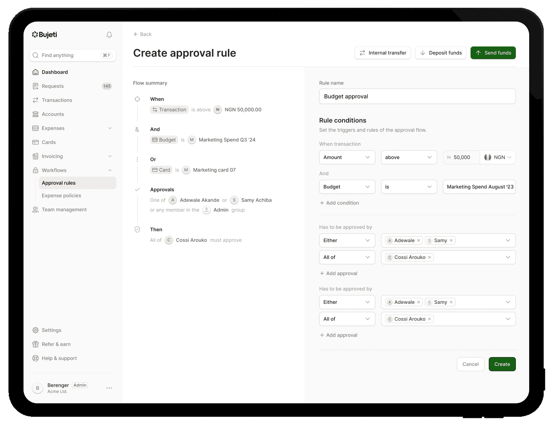 Whether settling bills locally or paying international vendors, Bujeti let you pay in NGN or USD, from one place. No switching platform.