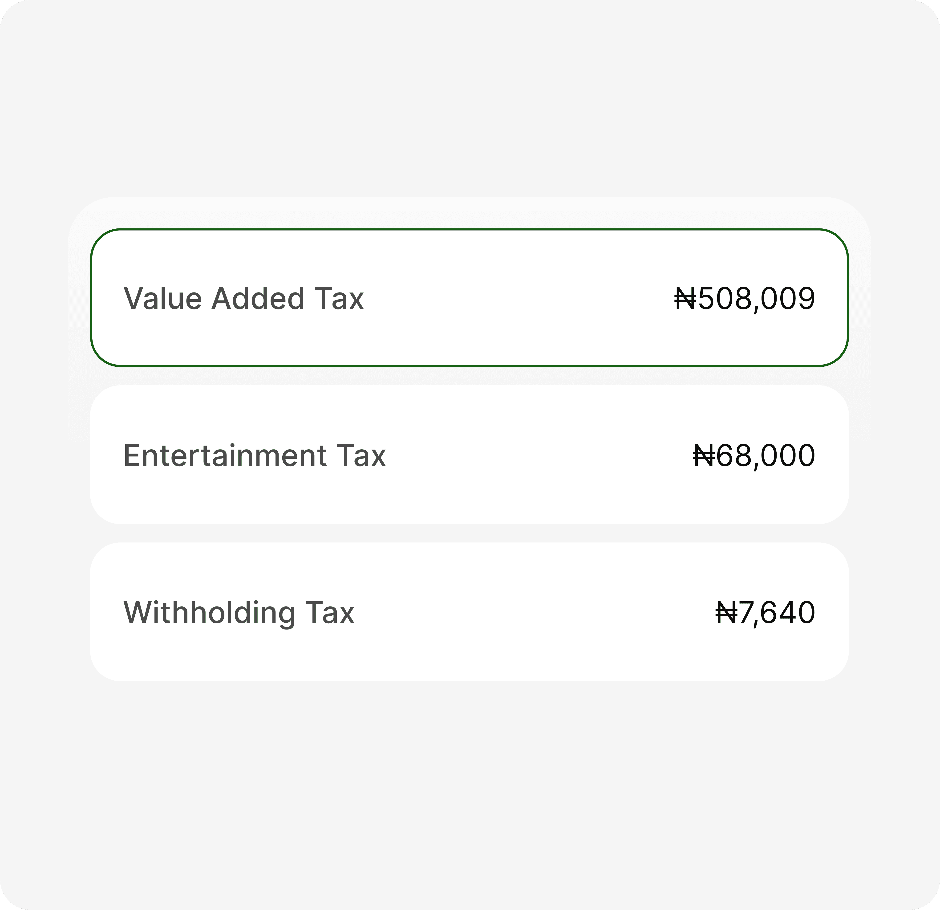 Configure your business taxes once, apply them across invoices and transactions, and set aside funds in a dedicated tax vault for easy filing and remittance.