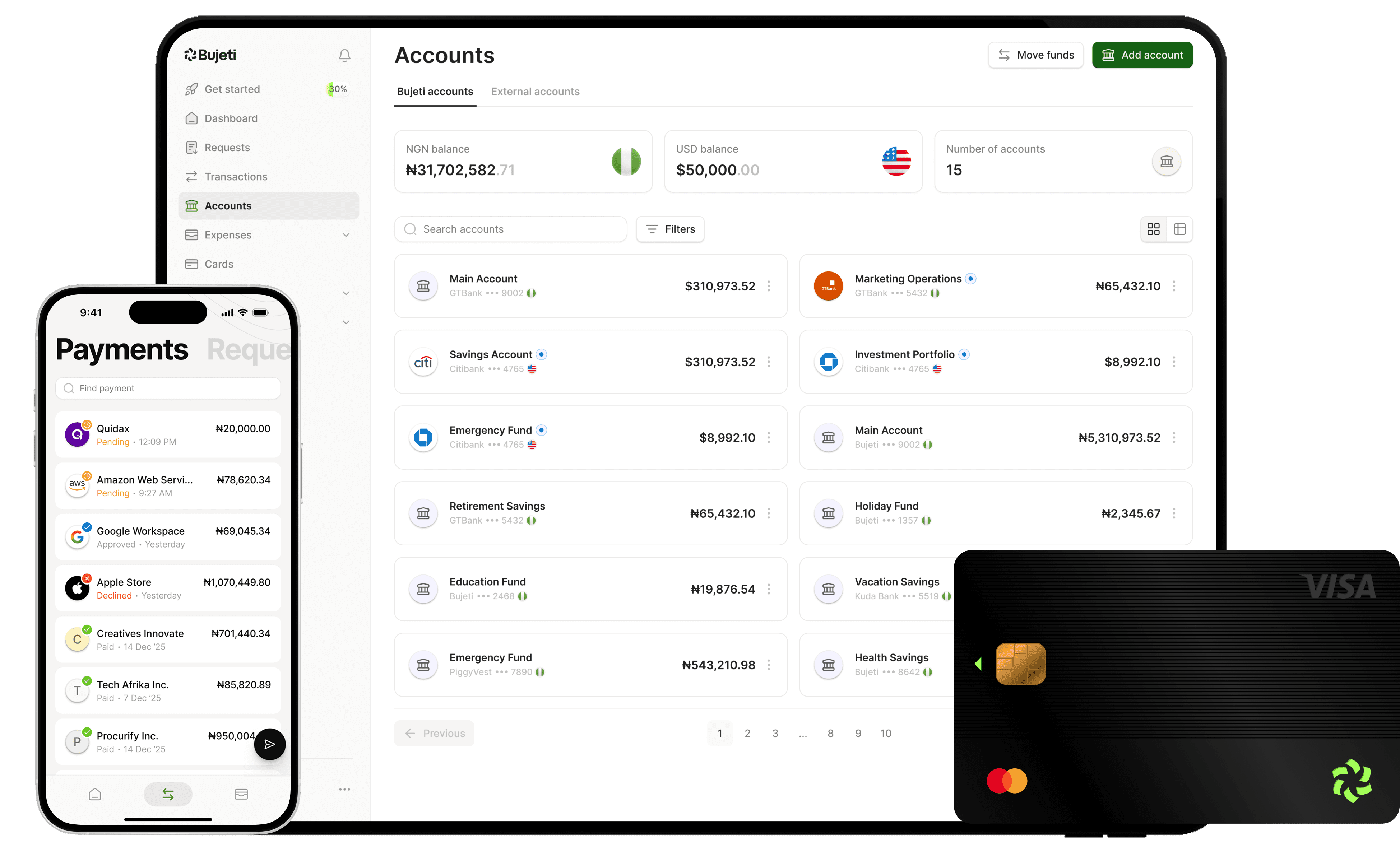 Piggyvest handles transactions and savings. Bujeti gives you budgets, spending policies, approval workflows, and real-time control.